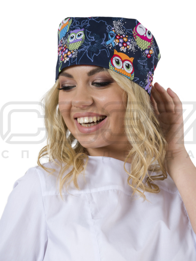 Колпак медицинский на резинке ИМ603(N6-Y2) цв.тёмно-синий/рисунок совы тк.стрейч в Краснодаре