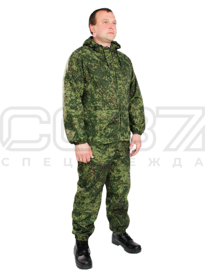 Состоит из куртки и брюк. Упакован в сумочку-мешочек.
