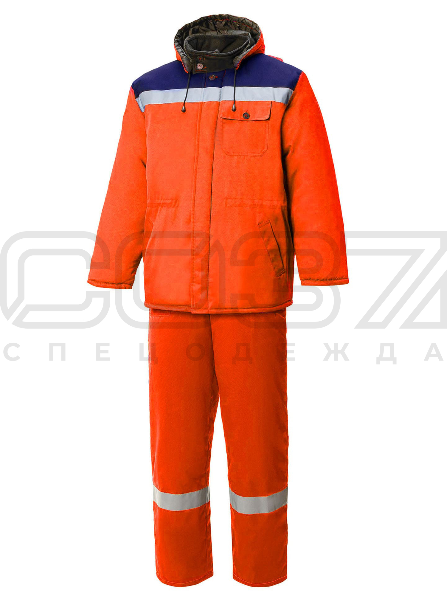 Костюм рабочий зимний "Антарес" с СОП цв.оранж/синий тк.смесовая (куртка+пк) в Краснодаре